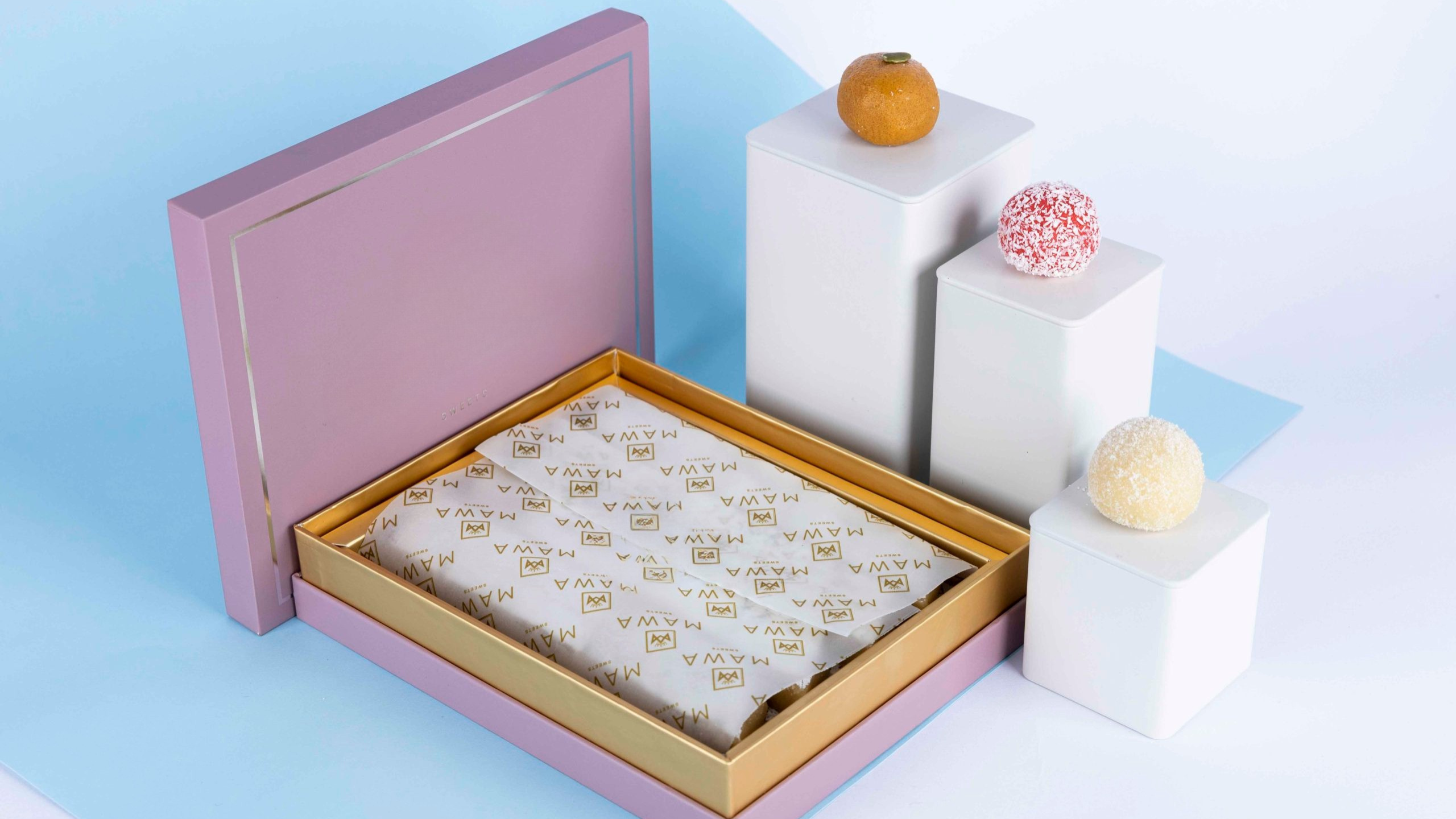 This box is an assortment of Blissful Besan Ladoo, Pink Coconut Ladoo and Mawa Authentic Ladoo.